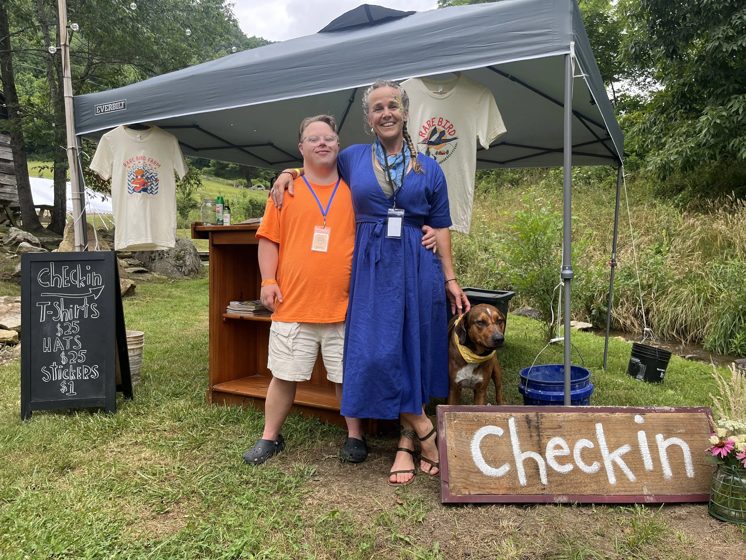 Photo by Taryn Piana of James, Farrah, and Nuki running check-in at Lightning Bug Festival 2024.